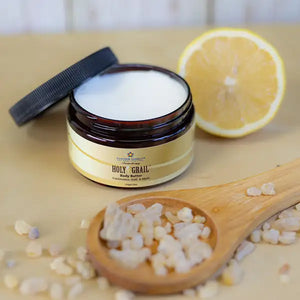 Body Butter: Frankincense, Myrrh, Lemon, Golden Turmeric, Copaiba & Clove Essential Oils in a base of Mango Butter, Colour Energy's Unscented Lotion and further enriched with Hemp Seed, Avocado & Coconut Oils